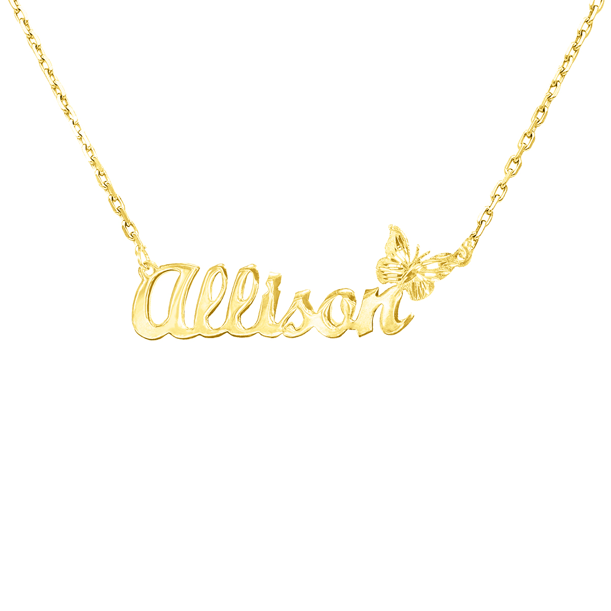 שרשרת שם בעיצוב אישי עם פרפר וחריטות יהלום