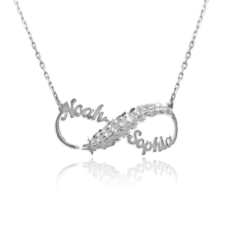 מידע נוסף על תכשיט: שרשרת אינפיניטי עם נוצה וזוג שמות בעיצוב אישי