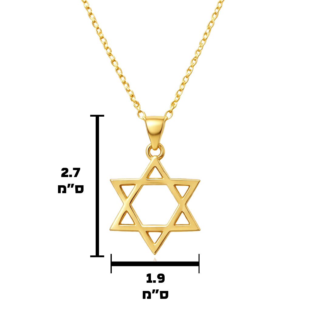 | עיצוב | מגן דוד פתוח קלאסי בגימור חלק ומבריק |