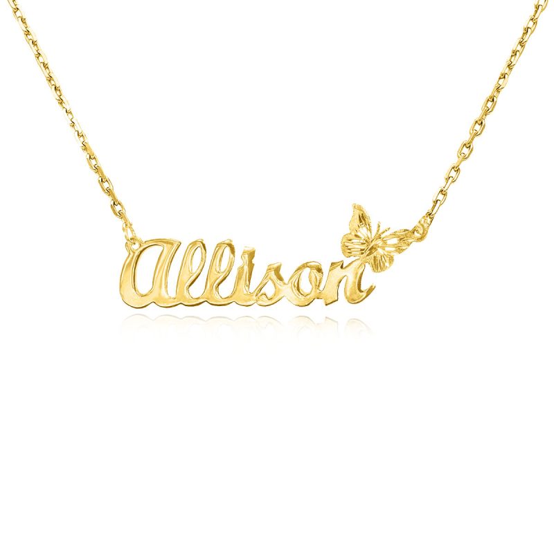 שרשרת פרפר עם שם מזהב צהוב, לבן, כסף או ציפוי זהב:
