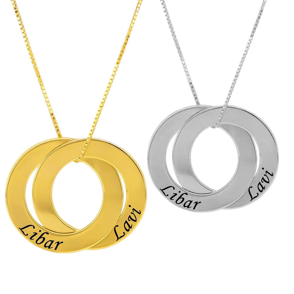 שרשרת תליון 2 חישוקים שם בעיצוב אישי