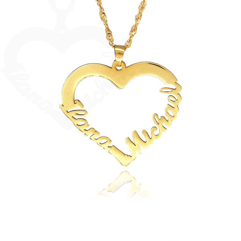 מידע נוסף על תכשיט: תליון לב מהמם הכולל 2 שמות בעיצוב אישי באנגלית